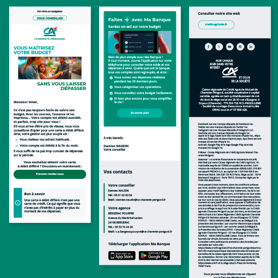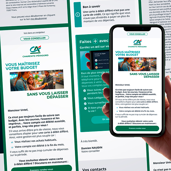 Refonte de 16 emailings relationnels pour la Caisse régionale du Crédit Agricole de Charente-Périgord.