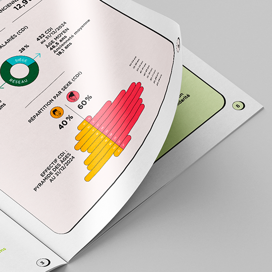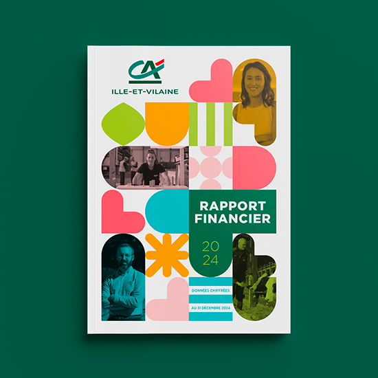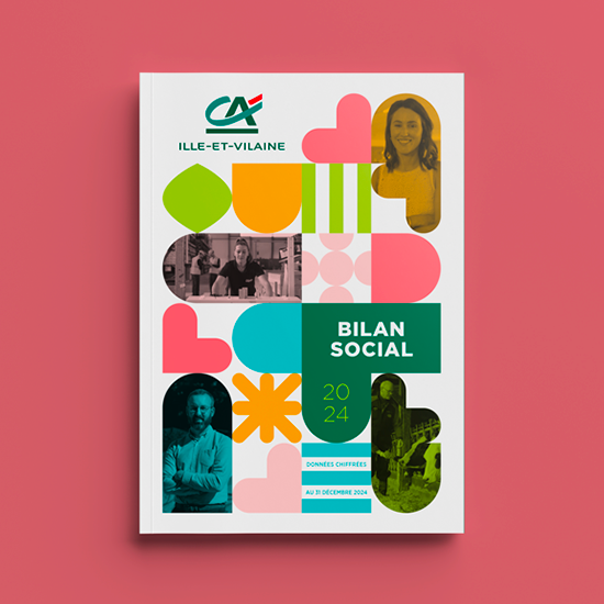 Création de l’identité visuelle et conception graphique des couvertures du Bilan Social et du Rapport Financier 2025 du Crédit Agricole d’Ille-et-Vilaine (édition et marque-pages)